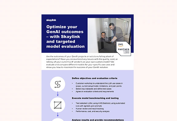 Is your GenAI not delivering the desired results? With Skaylink’s Model Evaluation, we compare different LLMs under real-world conditions and clearly show you which model offers the optimal combination of quality, cost and performance for you.
